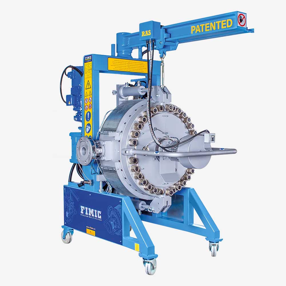 RAS is the FIMIC automatic self-cleaning melt filter designed to adapt perfectly to your needs. Configurable according to the material to be processed, hourly throughput, contamination level, and required filtration grade, it is FIMIC’s most recognized product and still today a symbol of a technology that established us as an international reference in plastic recycling.